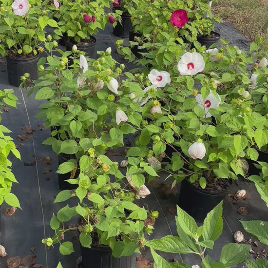 Bring bold, tropical beauty to your garden with the Luna Pink Swirl Hibiscus (Hibiscus moscheutos)! Known for its huge, white-to-blush-pink blooms that can reach up to 8 inches across, this hardy perennial is a true showstopper in any landscape. Perfect for garden borders, flower beds, or as a striking focal point in containers, Luna Red thrives in full sun and rewards you with stunning color all summer long.